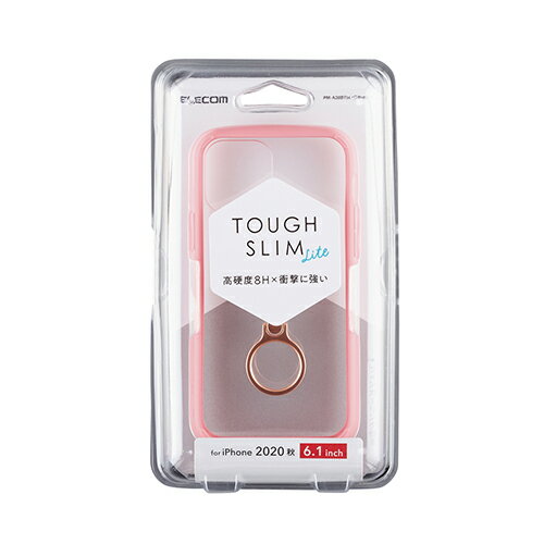 ■全周に配置した独自設計のエアクッションが衝撃を吸収し、背面には高硬度8Hの特殊樹脂を採用した落下防止リング付きのiPhone 2020年秋 6.1inch用TOUGH SLIM LITEケースです。