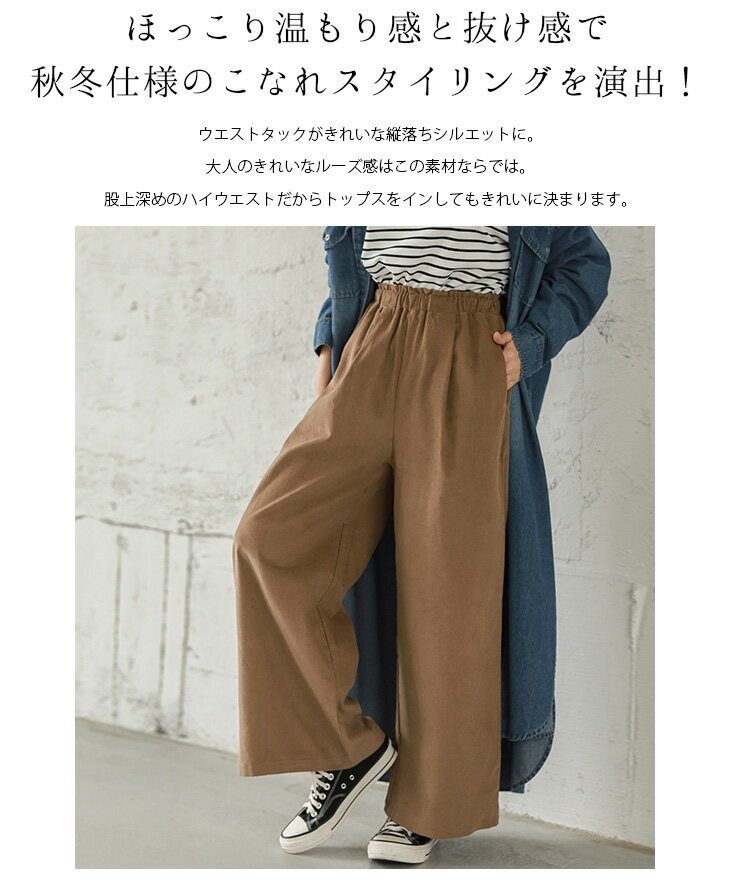 コーデュロイ ワイドパンツ パンツ レディース ウエストゴム ウエストタック 楽ちん ボトムス カジュアル ガウチョパンツ ロング 大人 シンプル おしゃれ 可愛い メール便 2020秋冬新作【lgww-at4127】【即納:1-5営業日】【送料無料】メ込